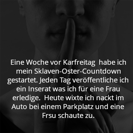 Ich M58 aus der Schweiz musste gestern Abend meine verlorene Wetteinsatz als nackter Sklave einlösen. Musste eine Stunde der Frau,ihrer Gerte,Peitsche und Wachskerze nackt zur Verfügung stehen zur züchtigung. Da ich ein paar mal "Aua" sagte muss ich zur Strafe bis Freitagabend ein Penigkäfig tragen. Darf am Freitagabend dann den Schlüssel holen zum Öffnen des Käfigs.
